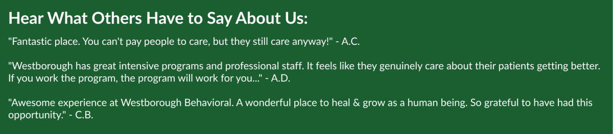 At Westborough Behavioral Healthcare Hospital, we offer a full continuum of inpatient and outpatient services to address the diverse mental health needs of individuals across all ages and backgrounds. Our goal is to provide timely, compassionate, and personalized psychiatric care in a safe and structured setting.